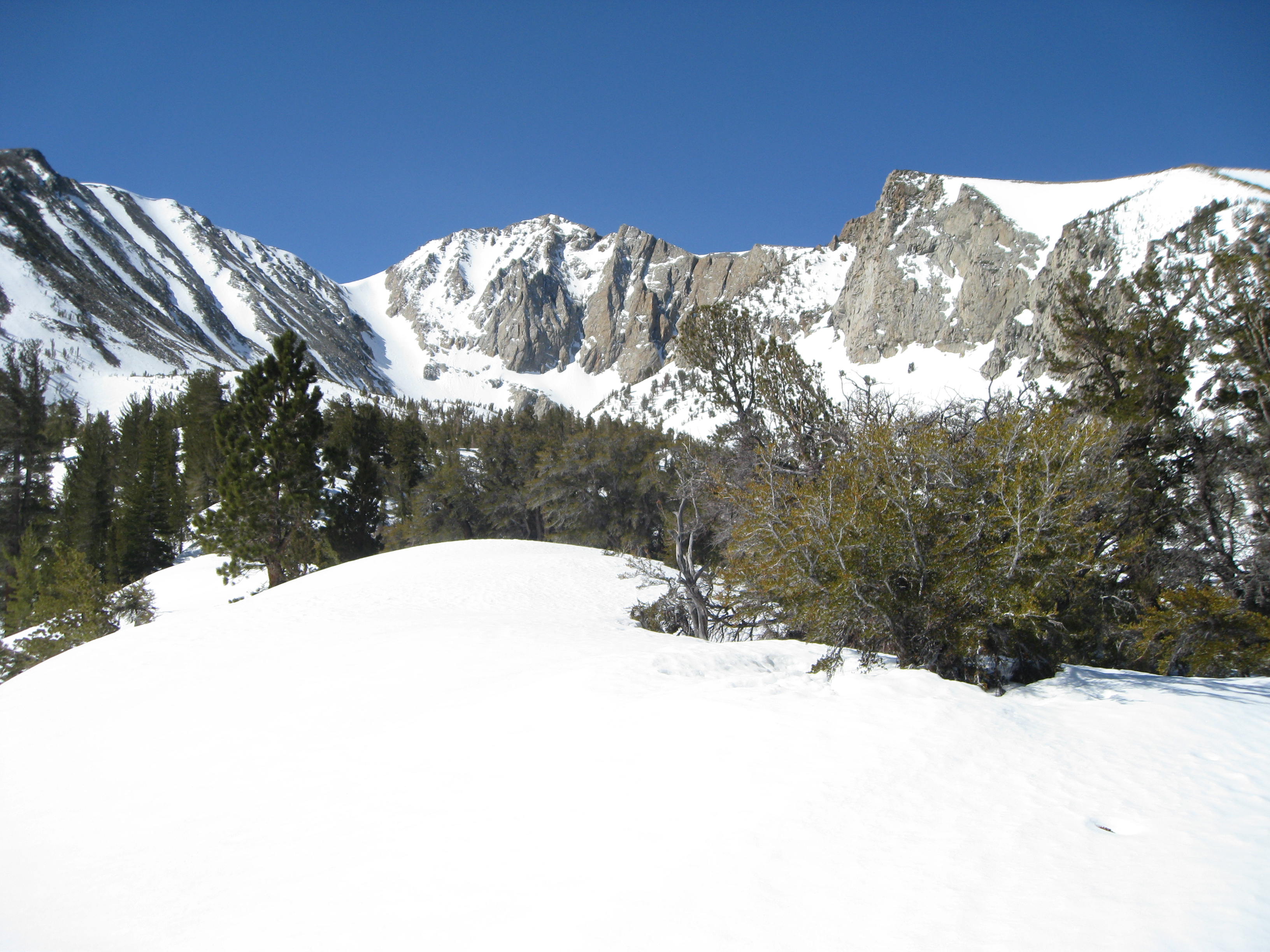 The next day we did a shorter hike up Mt. McGee. The weather was not ideal – a mix of wind and snain, so we hiked up as far as we felt like and then skied down to go soak in the hot springs near Mammoth.