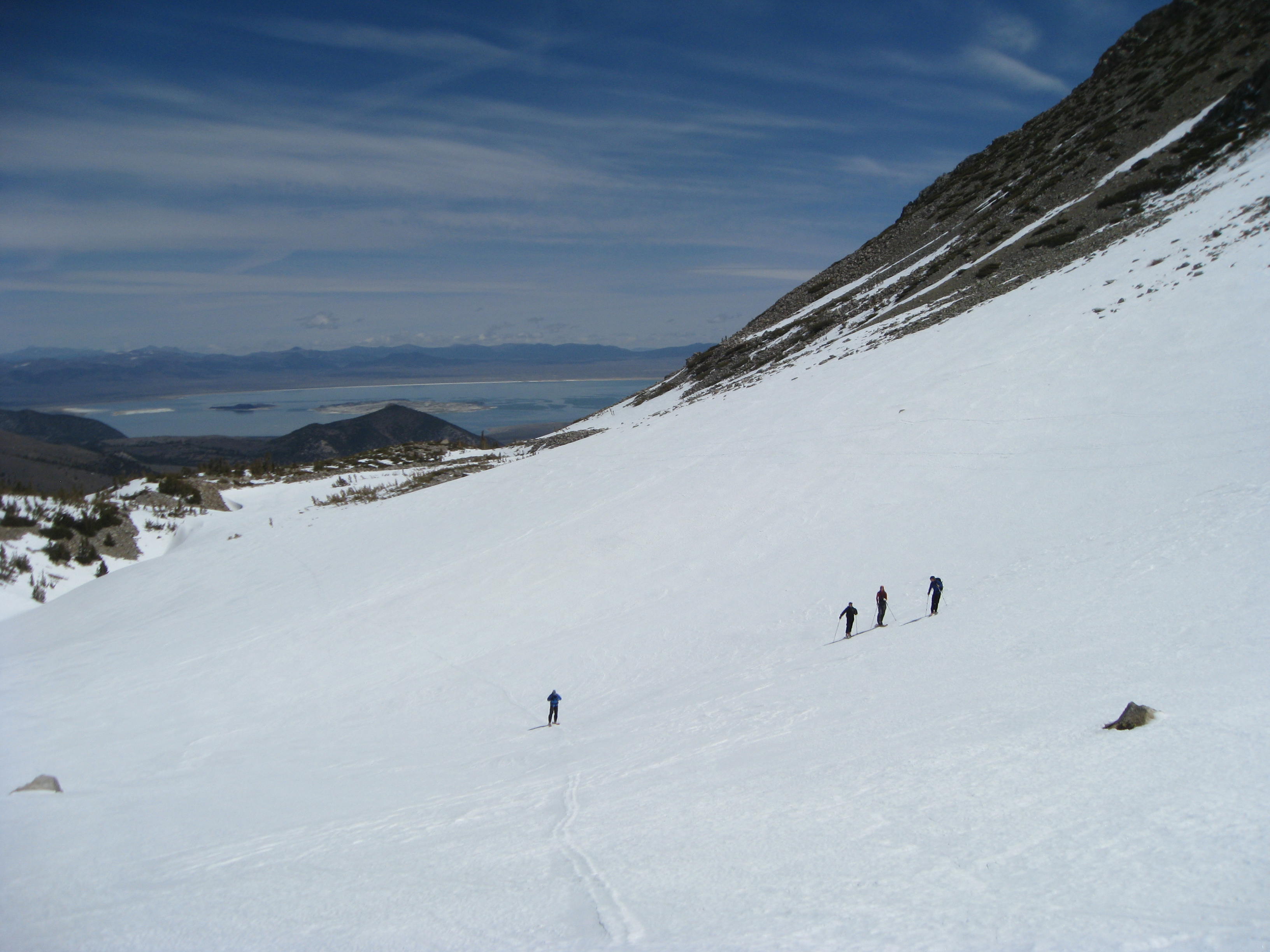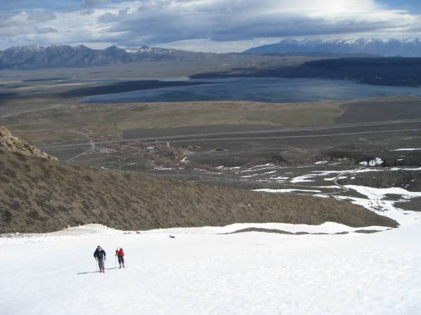 It was Pat’s spring break and my friend Eric invited us down to his house near Mammoth for some spring ski touring. The Eastern Sierras is possibly one of the best backcountry skiing areas in North America. With big and aesthetic lines and a stable deep snowpack, there are endless possibilities. Add to that mix unique desert/mountain scenery, natural hot springs, and a 5 hr minimum drive from any big cities, it is a true getaway.