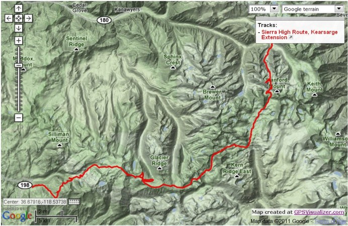 This was also the hardest day to stay with the splitboarders since skis are much better at holding a contour. We made it to the car around noon and it was 65 degrees in Wolverton. We drove through Sequoia National Park and dropped down to Frenso (Fres-YES!) where it was a sweltering 90 degrees! Woah! Temperature and culture shock… but the Chipotle burritos and beers were delicious. We were home to Tahoe that night by 8pm. Here is a map of days 5 and 6.