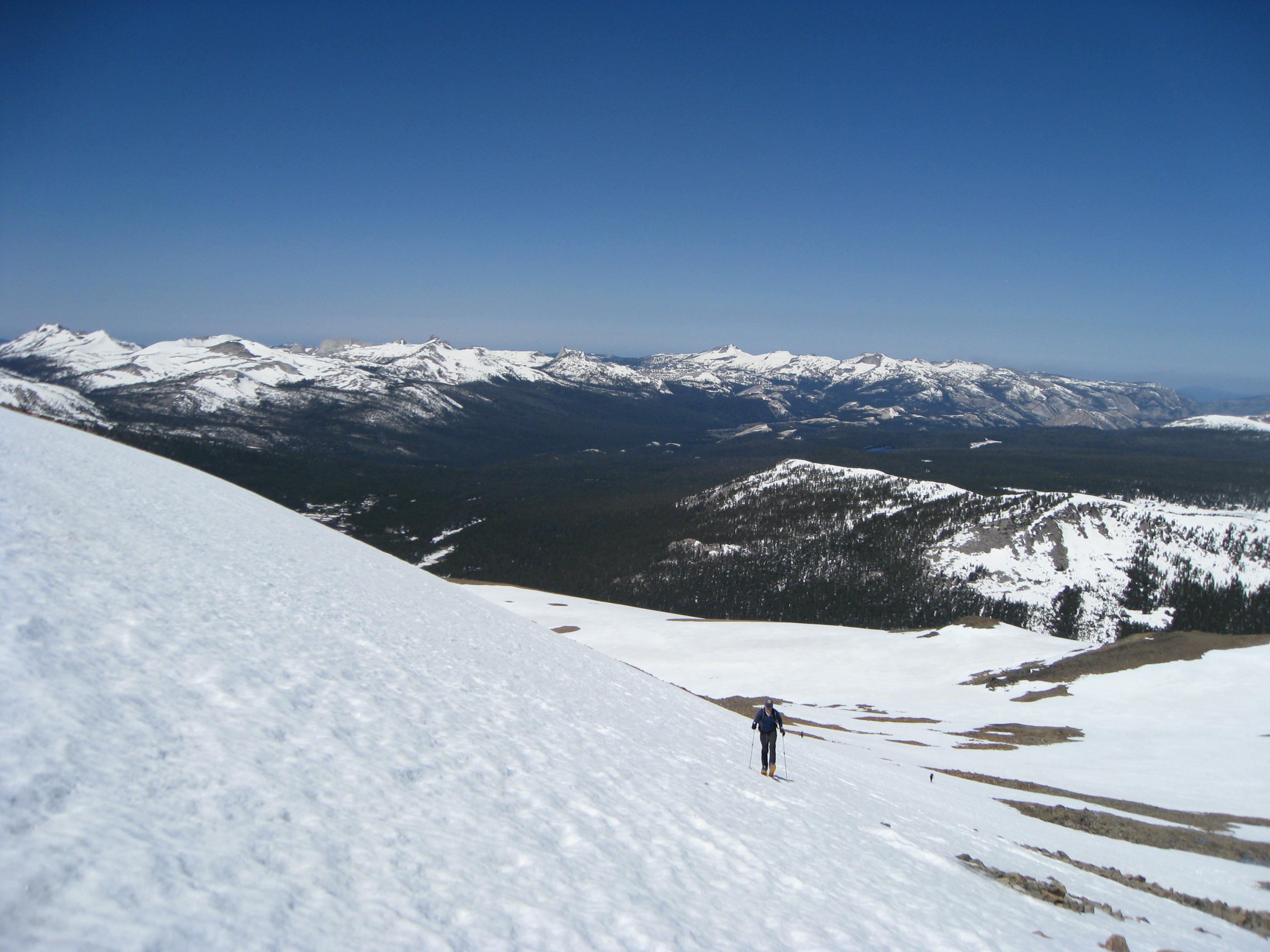 At the top of Ellery Bowl, we saw some crazy people hiking without shirts on and sitting under cornices – it was difficult for me to watch, but they managed to reach the top without incident. We had some lunch and then hooted and hollered down the last 2,500 vertical to our car parked at the Ellery Lake dam.