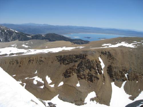 The east-facing couloir was looking perfectly soft and we beat the other people looking to ski it by 5 minutes earning the honors of dropping it first… what luck. I dropped in first and it was steep and perfect. The view down to Glacier Canyon and Mono Lake was unreal.