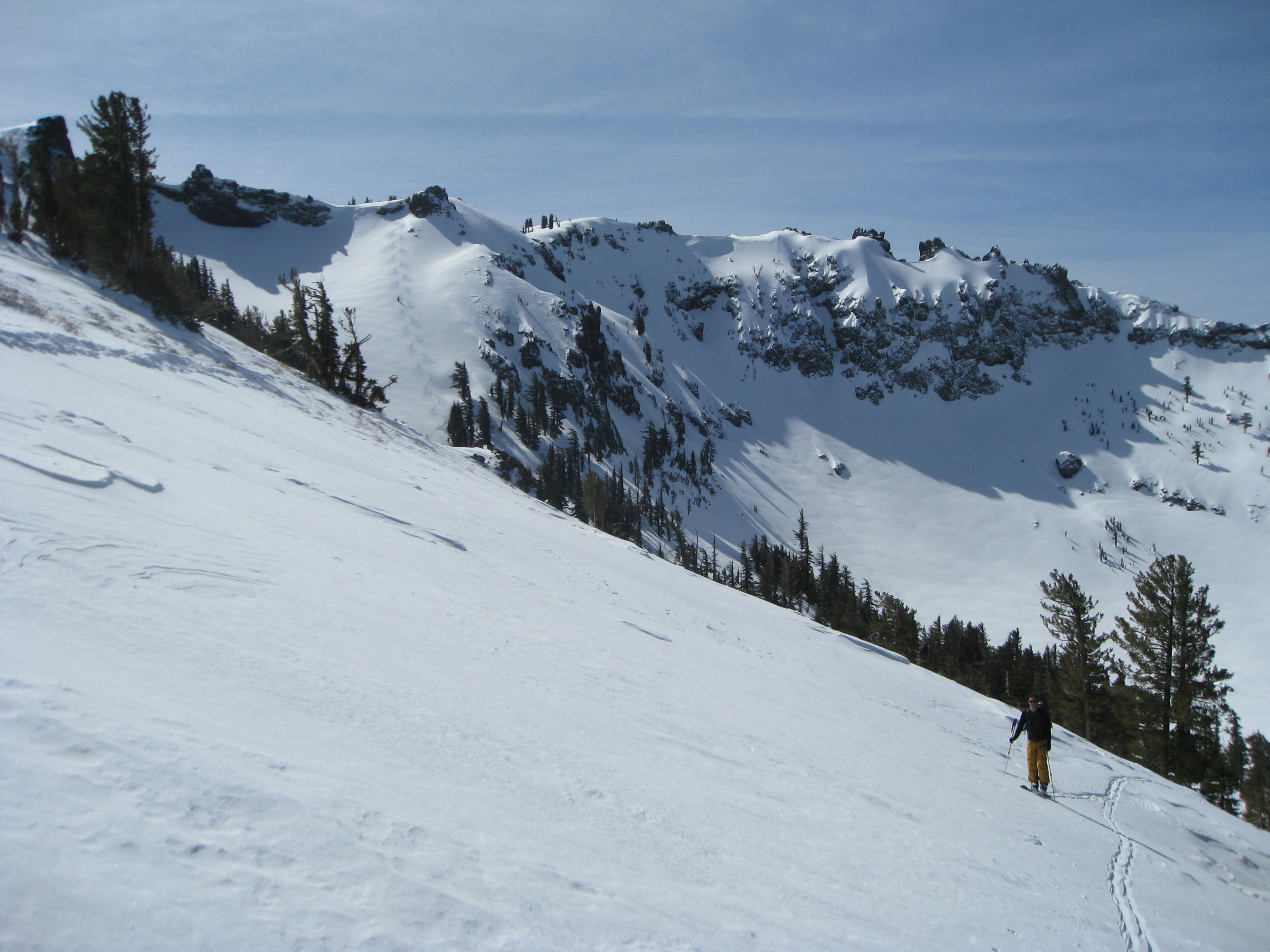 The snow was so good in Thunder Bowl that we almost went back, but we opted for a run out in Emigrant Basin instead since Brian had never skied it. California chutes is a Kirkwood classic sidecountry run and since the snow was feeling good on most aspects, it seemed like a great time to hit it. The snow was a little more variable than Thunder Bowl and there were a lot more people out there but it was still super fun! Probably the best snow I’ve skied that thing in!