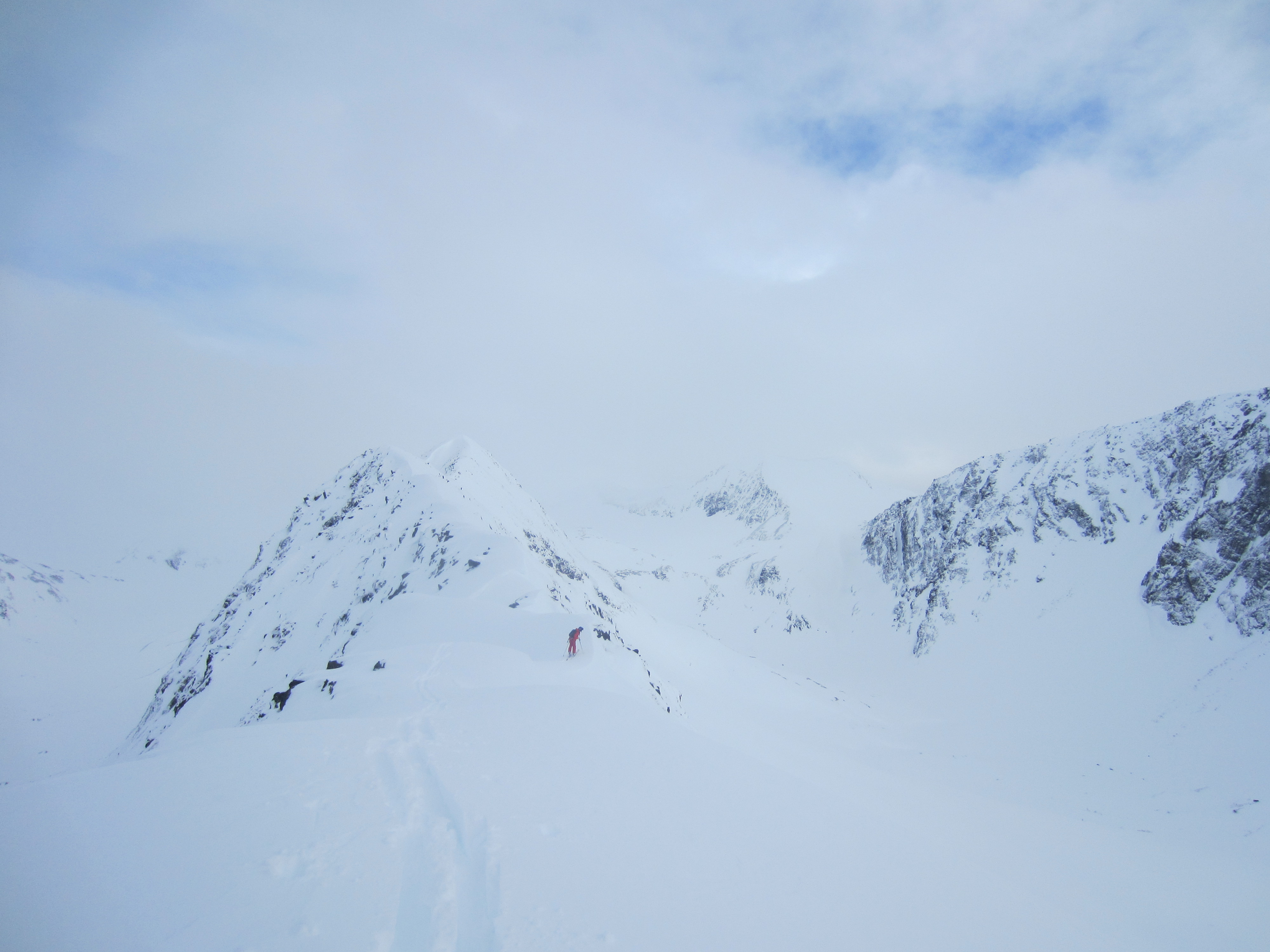 Skiing up the ridge to access fresh powder (Photo by Patrick Kelly)